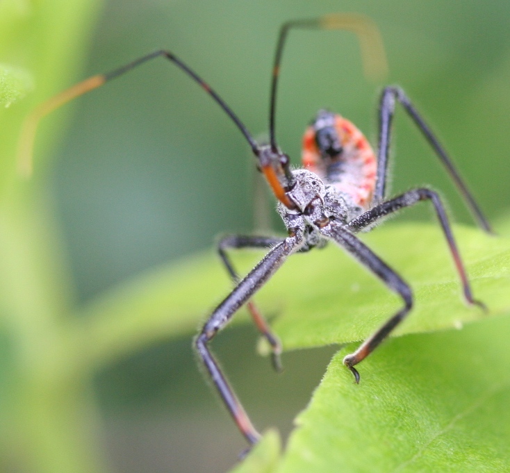 Your first image is a nymph of an assassin bug known as a wheel bug - http://www.dpughphoto.com/images/wheel%20bug%20nymph%20penny%27s%20bend%2061507.JPG