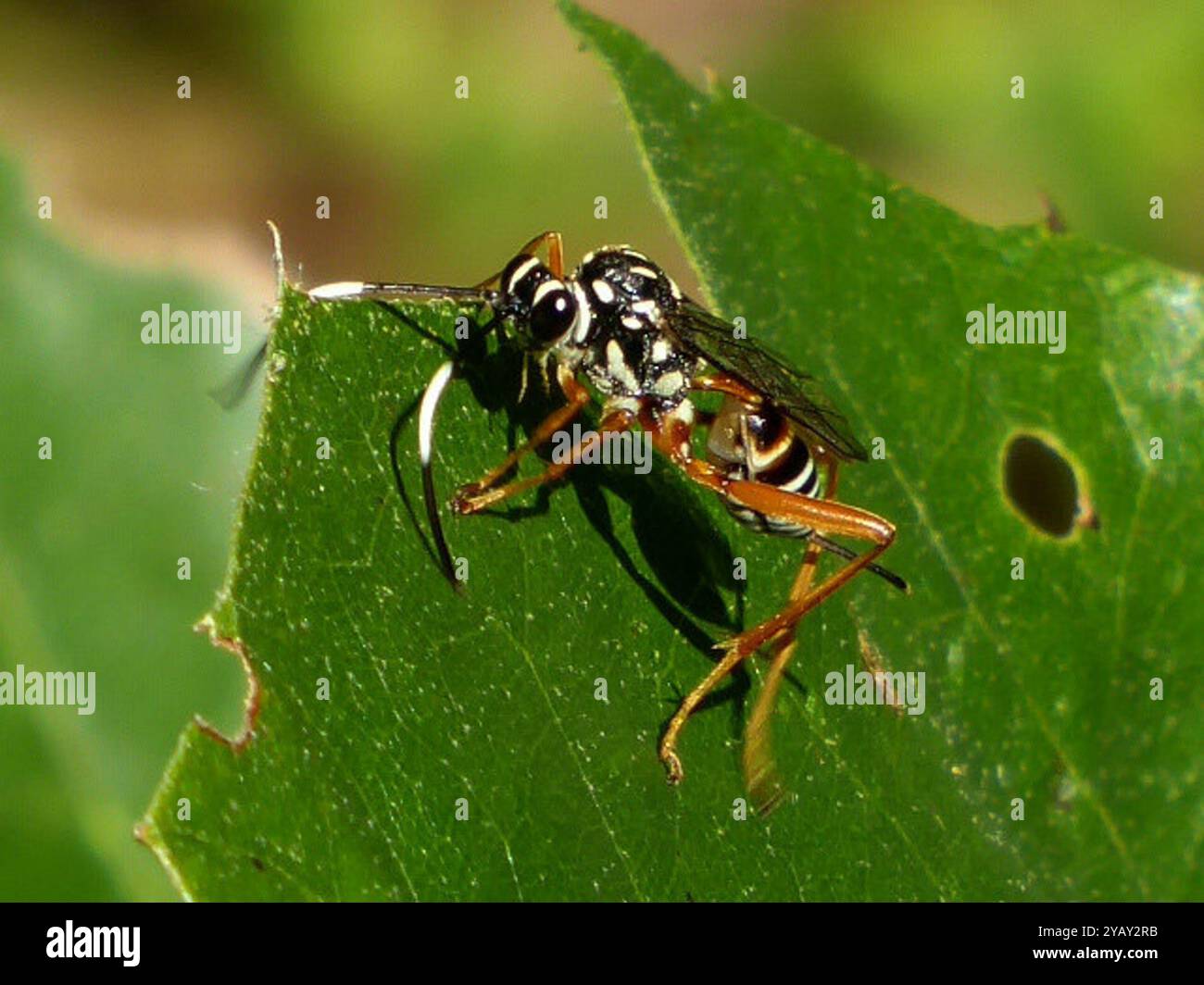 You're right, I see the black and white bands on the bands on the lemon tree borer's hind legs while the wasp I posted and your example both have red hind legs. Thanks for setting me straight. :D
