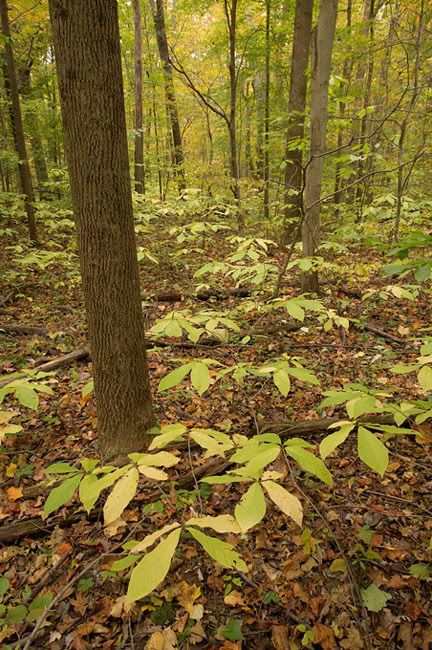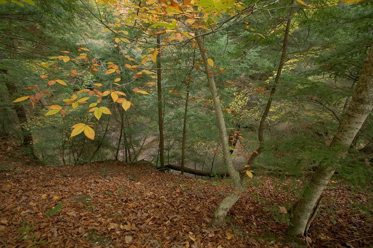 Scott- I use a digital camera for my images. I used to use film but blamed all of the bad pictures on the camera. Bought a digital camera, still got bad pictures. Read up on the subject a bit, tried different things, still get plenty of bad pictures. TRSP is a nice place to see some native plants that don't normally grow on the Plains. American Beech, Hemlock, etc. I can't say that I have really studied the plant life as I have been more focused on the artistic merits of the place. Great canyons! Nearby Shades S.P. is more of the same only a little different. I drove through Yellowwood last year after all of the leaves were down, more on a scouting trip than anything. About 50 miles north of Turkey Run is a very small preserve that I don't remember the name of. Here I ran into some Mitchella repens. I was quite suprised to find it here since I hadn't thought of it as a Midwestern plant. Actually, I hadn't thought about it since I read about it in Dirr's book some years ago. Anybody else have native populations growing near them?