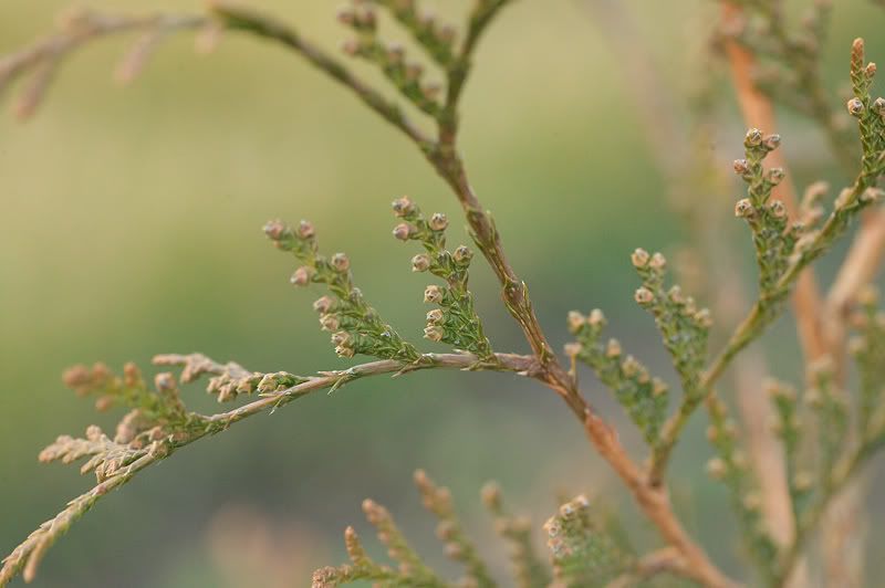 #3 Little (flower buds?) things on 'Green Giant' http://i24.photobucket.com/albums/c16/erniew/plants/ThujaXStandishiiGreenGiantFoliage10.jpg Earlier in the fall I hadn't noticed these so I think that these are a new addition for fall.
